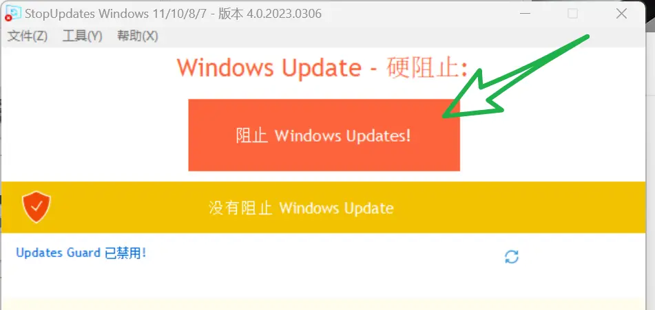 操作很简单,想要禁止更新,直接点 阻止Windows Updates 即可。