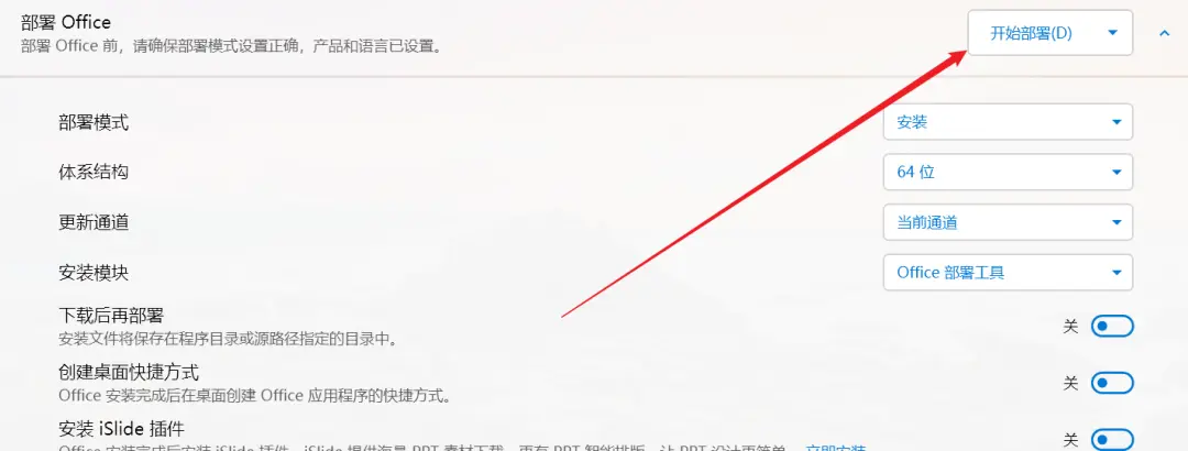- 返回到顶部点击右上角的“开始部署”按钮即可开始安装。
