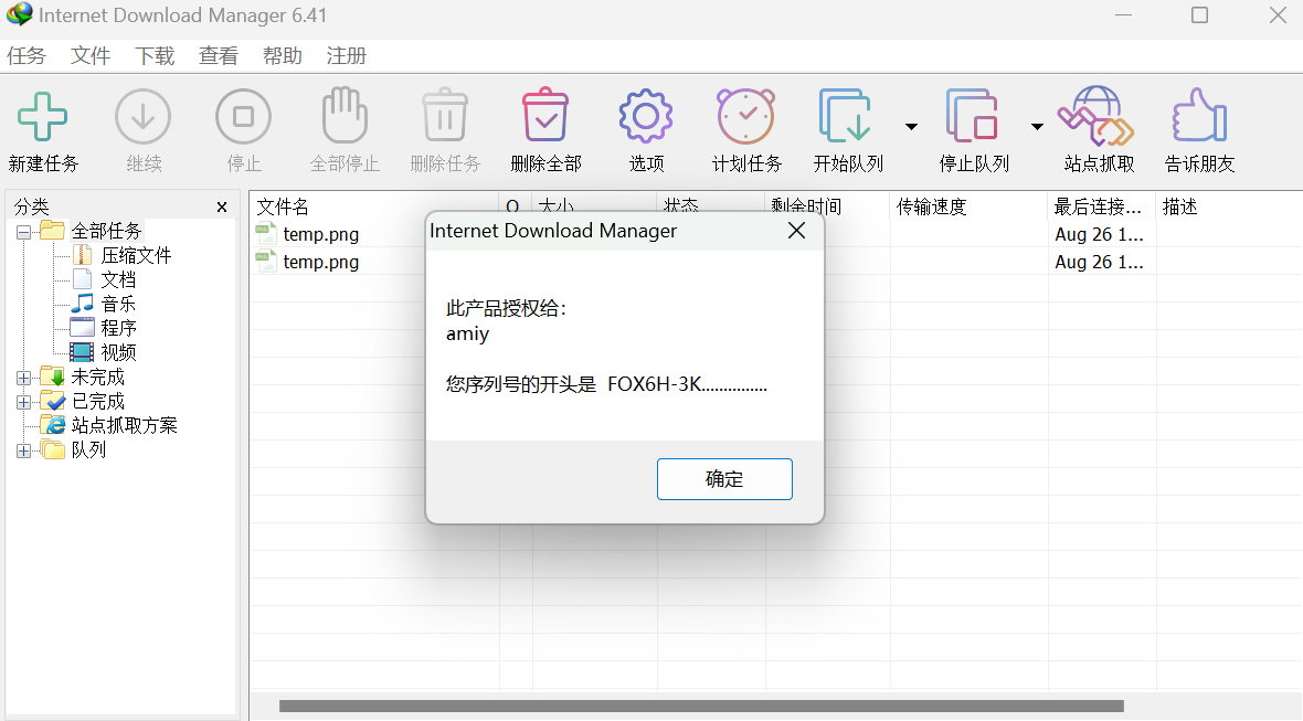- 在激活过程中会提示你输入用户名,这里的用户名随便输!另外在激活过程中会下载两个”temp”的图片,以确定IDM的安装位置。