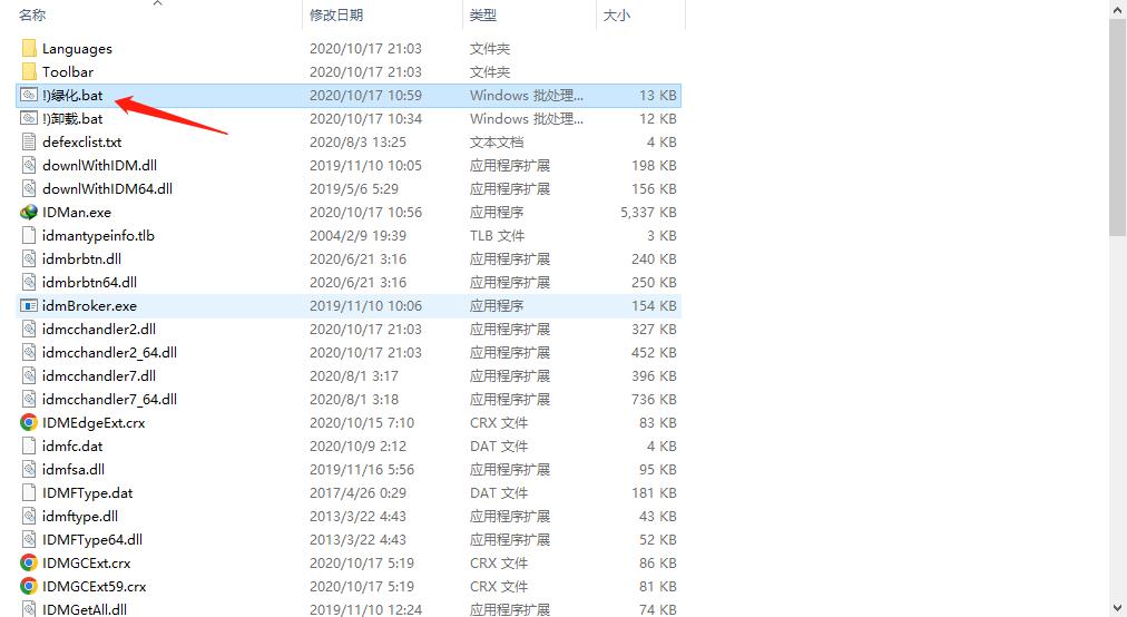 如果上述办法嫌麻烦的小伙伴可以直接下载本站的IDM特殊版,解压之后右键管理员身份运行 “绿化.bat” 即可。