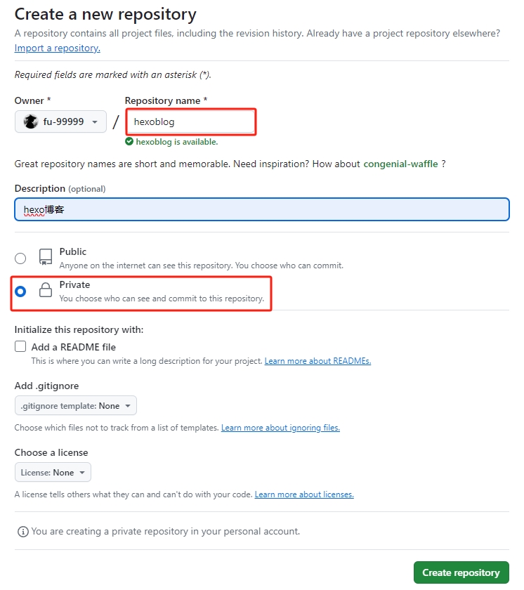 - 创建GitHub仓库,将hexo上传到GitHub仓库