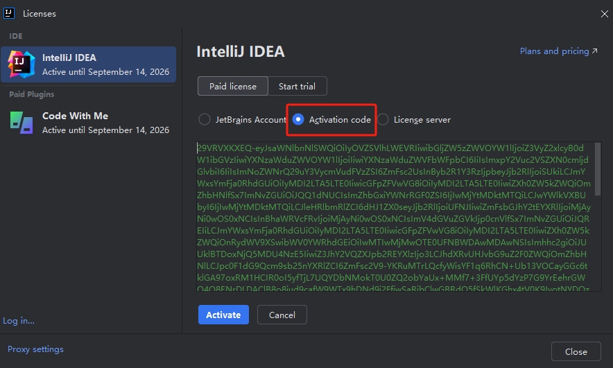 - 复制激活码打开idea粘贴激活,如果出现错误按照上面步骤重试即可。