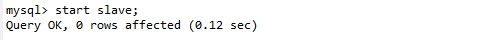 执行之后显示Query OK配置完成 - 继续在从库输入命令: start slave; 开启主从数据同步