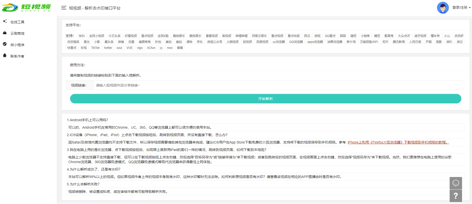 短视频 - 在线解析去水印接口平台