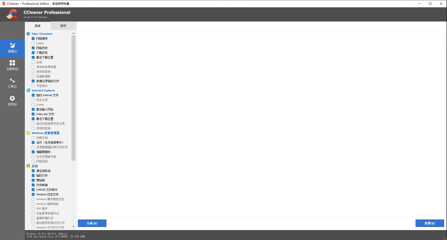 C盘清理的工具,绿色版已经激活,功能包括“清理”、“清册表”、“工具”和“选项”这几大功能。
