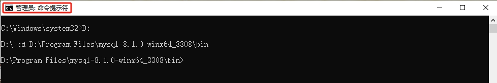 default-character-set=utf8进入bin目录,打开CMD(一定要以管理员身份运行)