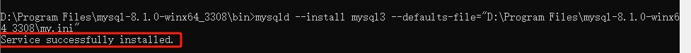 mysqld --install mysql3 --defaults-file="D:\Program Files\mysql-8.1.0-winx64_3308\my.ini"