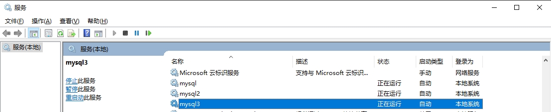 出现 Service successfully installed 表示安装成功。在服务中找到mysql3的服务启动。